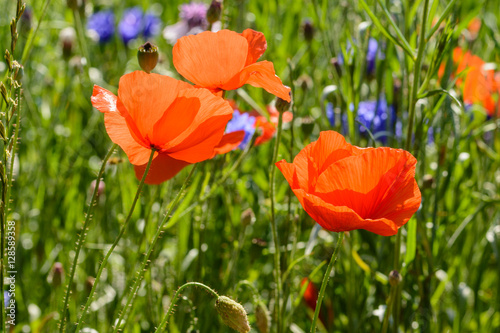 © stefan1085, Fototapeta premium Close up from flowers on a meadow with blue sky