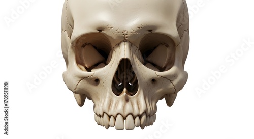 © RitaRuhi, Obraz premium Close up front view of a human skull isolated on a white background with detailed bone structure