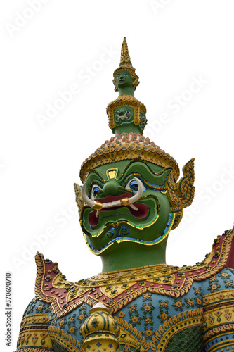 © kanyarat, Fototapeta premium Close-up giant guardian statue in Bangkok Thailand on white background