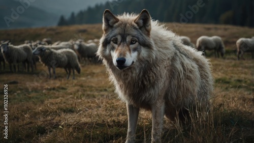 Fototapeta premium Close up gray wolf portrait.