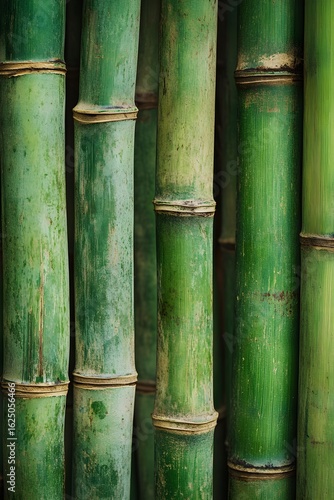 Fototapeta premium Close Up Green Bamboo Poles Texture Horizontal background