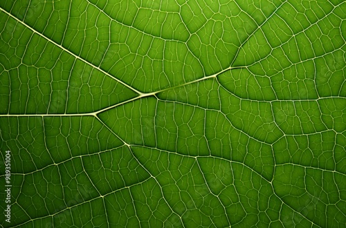 © Eva13186707, Obraz premium Close-Up Green Leaf Texture with Veins