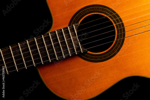 © bussapa, Obraz premium Close-up guitar in black backdrop