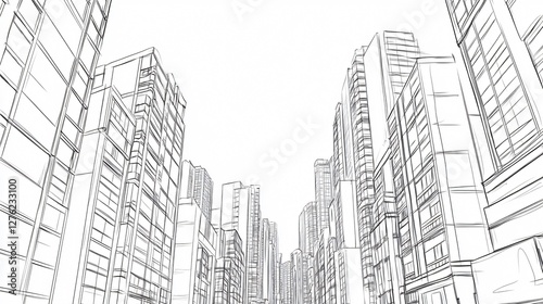 © Noah, Fototapeta premium Close-Up Hand Drawn Urban City Buildings