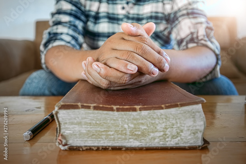 © surachat, Fototapeta premium Close up hands praying.