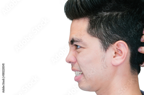 Fototapeta premium Close-up Handsome young asian man stressed isolated on white background....
