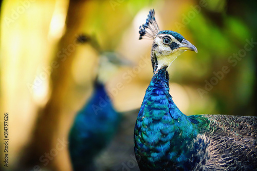 © Pattana, Obraz premium Close up head of beautiful Indian peacock in the forest