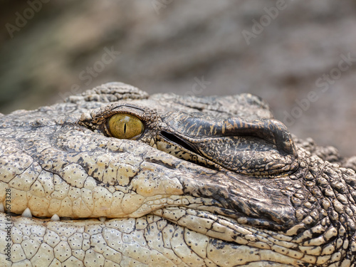 © backiris, Obraz premium Close up Head of Crocodile was Sunbathing Isolated on Background