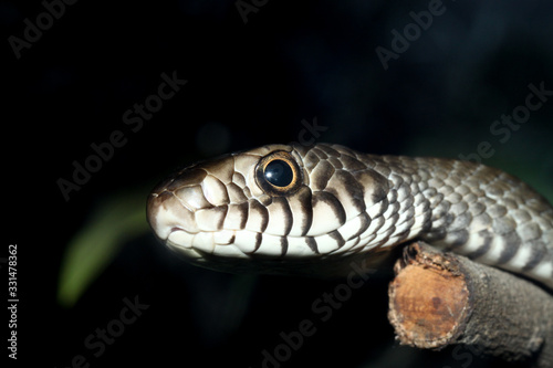 © pumppump, Fototapeta premium Close up head rat snake on stick tree at thailand