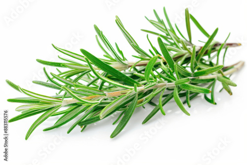 Fototapeta premium close up horizontal detailed image of rosemary twig over a white neutral background