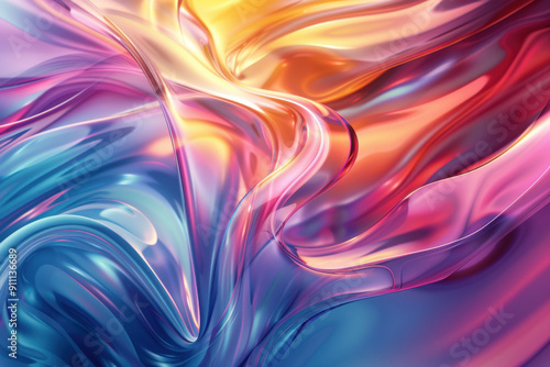© AlfredoGiordano, Naklejka premium close up horizontal glowing illustration of glossy colorful wavy abstract background