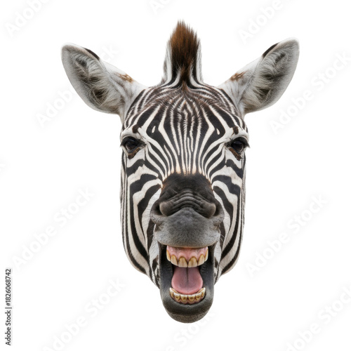 © Gustav, Fototapeta premium Close-up humorous portrait of a laughing zebra head with black background