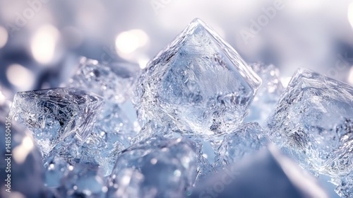 © Almahyra, Obraz premium Close-up Ice Cubes Abstract Background, Refreshment