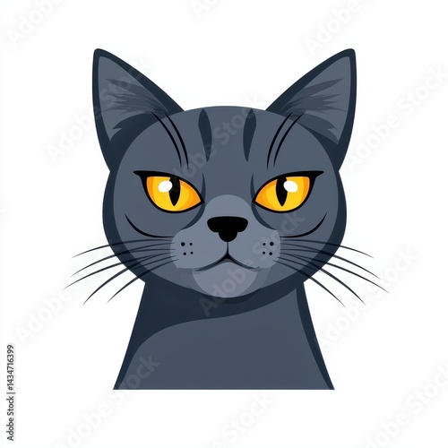 © Matt, Fototapeta premium Close-up illustration of a gray cat's face with bright yellow eyes