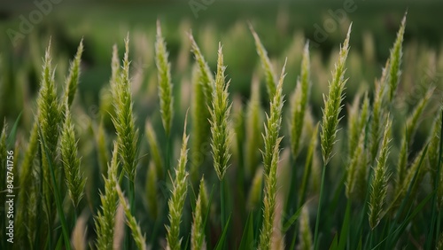 Obraz premium Close-up image of a green plant or grass in a field with a natural...