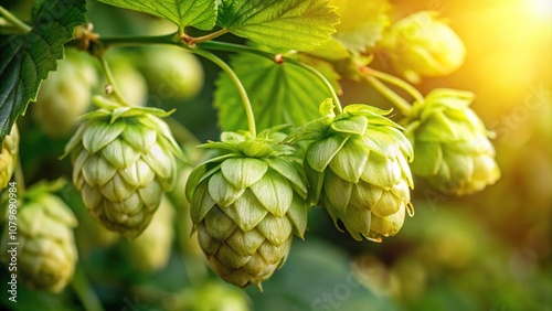 Fototapeta premium Close-up image of a hop cone with delicate flowers and tiny leaves, cones,...