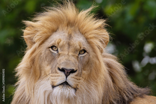 Fototapeta premium close-up image of a lion's head. expression is calm and majestic