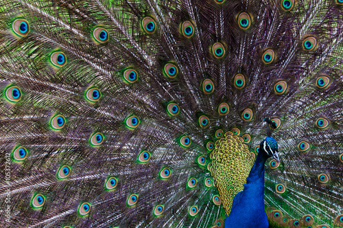 © carolblaker, Obraz premium Close up image of a Peacock displaying tail feathers.