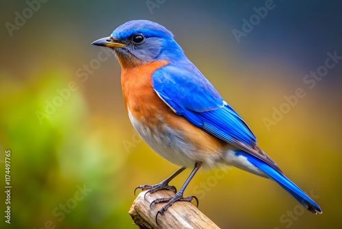 © AIARTS, Fototapeta premium Close-Up Image Of A Vibrant Blue Missouri State Bird Perched On A Branch, Showcasing Its Bright Blue Plumage And Charming Demeanor.