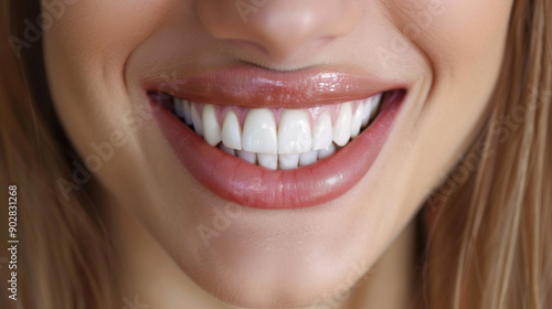 Obraz premium Close-up image of a woman's bright, healthy smile, emphasizing dental care...