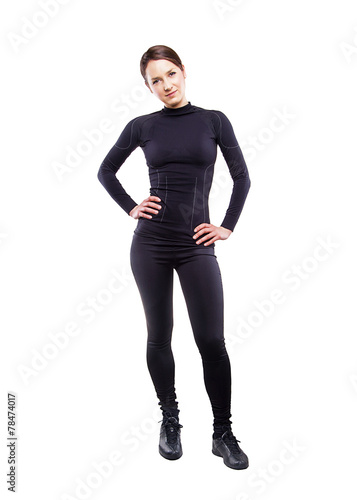 © Wisiel, Fototapeta premium Close up image of female in sports clothing on white background