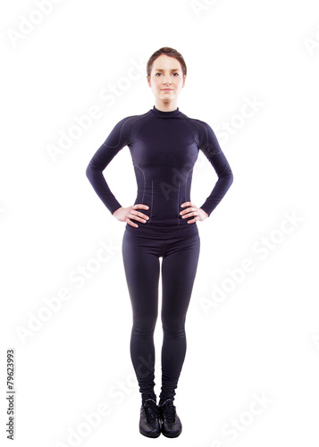 © Wisiel, Fototapeta premium Close up image of female in sports clothing on white background
