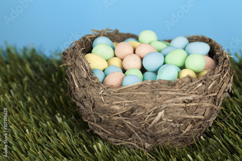 Fototapeta premium close-up image of nest with easter eggs
