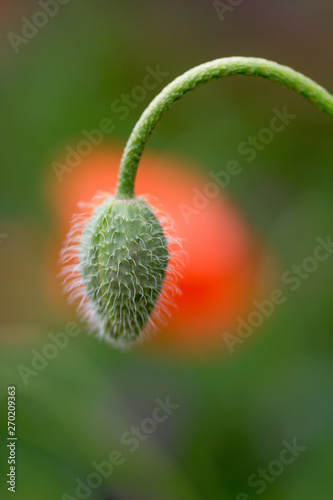 Obraz premium Close up image of Papaver rhoeas developing bud, also known as Corn poppy or common poppy