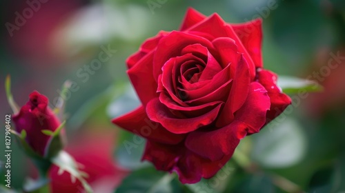 Fototapeta premium Close up image of vibrant crimson rose in bloom
