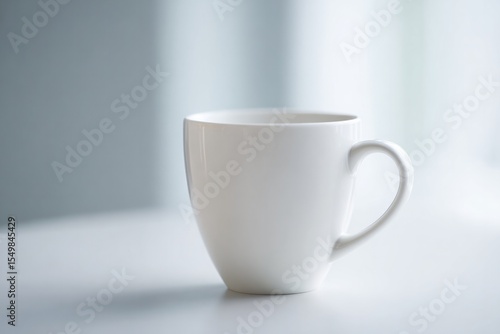 © Сергей Захаров, Obraz premium close-up image of white ceramic coffee cup on smooth minimalistic tabletop with soft even lighting gently illuminating