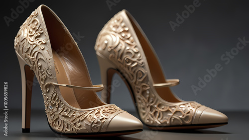 © arief, Obraz premium close-up image of women's high heels, showcasing the elegant design and texture