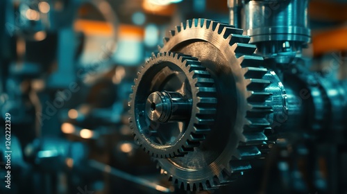 Fototapeta premium Close-up industrial gears, factory machinery, intricate mechanism, background blur, engineering concept