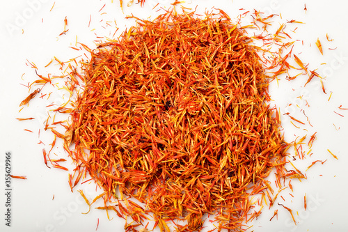 Fototapeta premium Close up Iranian red saffron spice isolated on white background