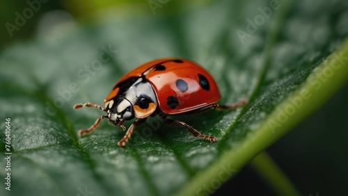 © Dindaa, Obraz premium close up ladybug on a leaf hd wallpaper