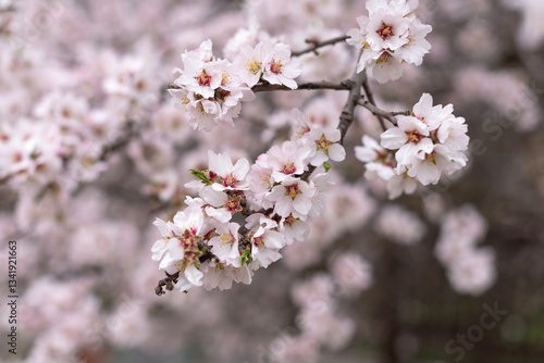Obraz premium close up large pink almond flowers in spring, copy space