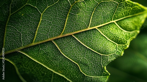 Obraz premium Close-up leaf vein detail, sunlight, green plant, nature background, botany study