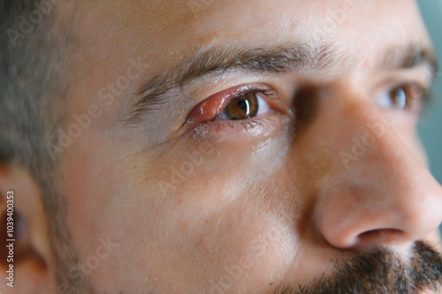 © Serhii, Fototapeta premium Close up left upper eye lid abscess