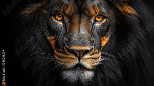 Fototapeta premium Close-up lion portrait, dark background