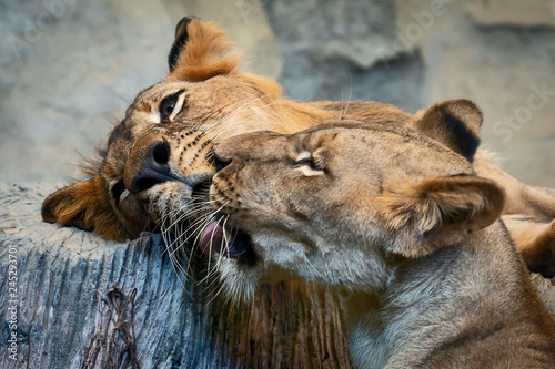 © Panthat Sitdatvirade, Naklejka premium Close up lions.