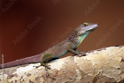 Fototapeta premium close up lizard on wooden log