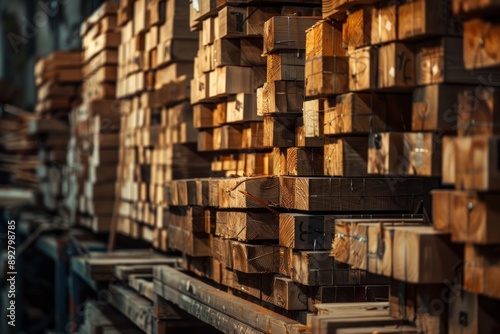 © Igor, Fototapeta premium Close up Lumber stored in a warehouse