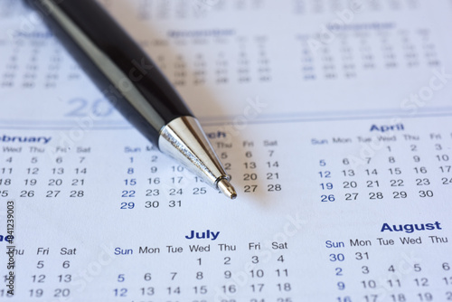 Fototapeta premium Close up luxury black pen on calender