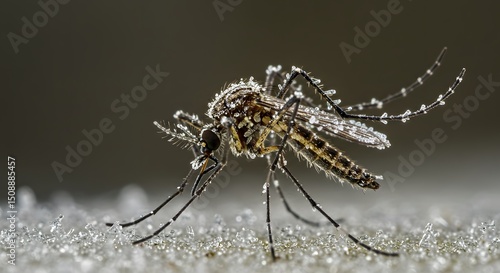 © Nafauzis, Fototapeta premium Close-up Macro Photography of a Mosquito Covered in Dew Droplets