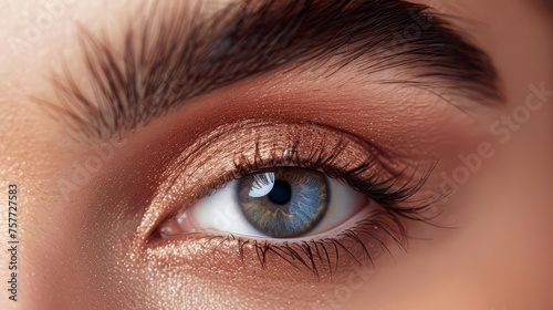 Obraz premium Close-up macro shot of a beautiful female eye with natural makeup and long lashes