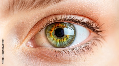 © pornthip, Obraz premium Close up Macro Shot of a Human Eye with Green Iris