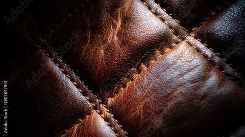 Obraz premium Close-up Macro Shot of Rich Brown Leather with Diamond Stitching Texture.