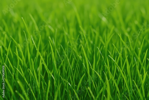 Fototapeta premium Close-up Macro View of Vibrant Green Grass Blades with Soft Focus Background nature lawn