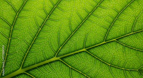 Obraz premium Close up macro view of vibrant green leaf veins and texture