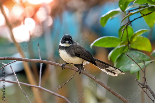 © backiris, Fototapeta premium Close-up Malaysian Pied Fantail Perched on Branch