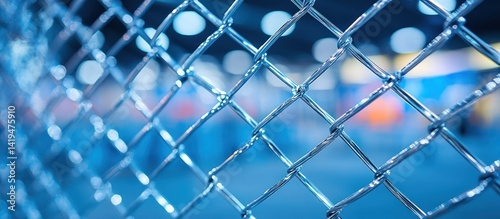 © adiba, Fototapeta premium Close-up metal chain link fence indoors